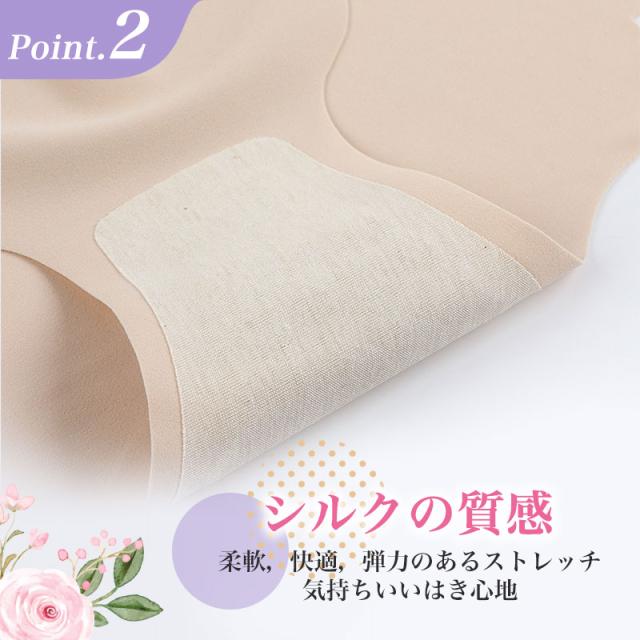 縫い糸を全く使わず、接着だけで仕上げる事で縫い糸による肌への負担を軽減します。のびのびフィットしてストレスゼロ。ウェストと足グリはノーゴムデザイン、なめらかなフリーカット素材を使用し、跡が付きにくい。