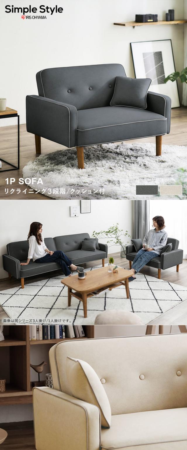 ★全品対象250円offクーポン★ ソファー 一人掛け 北欧 一人用 ローソファー リクライニング フロアソファ おしゃれ 韓国風 クッション付き ファブリック ソファ 1人 椅子 アイリスオーヤマ RSB-1S * 新生活 インテリア
