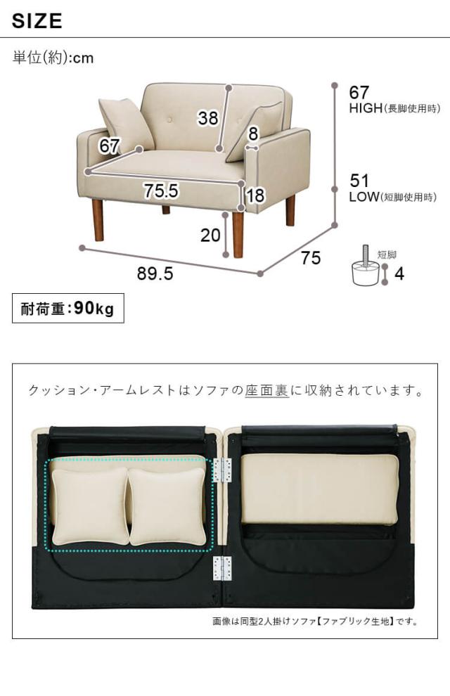 幅約89.5×奥行約75.0×高さ約67.0(ロータイプの高さ約51.0)
