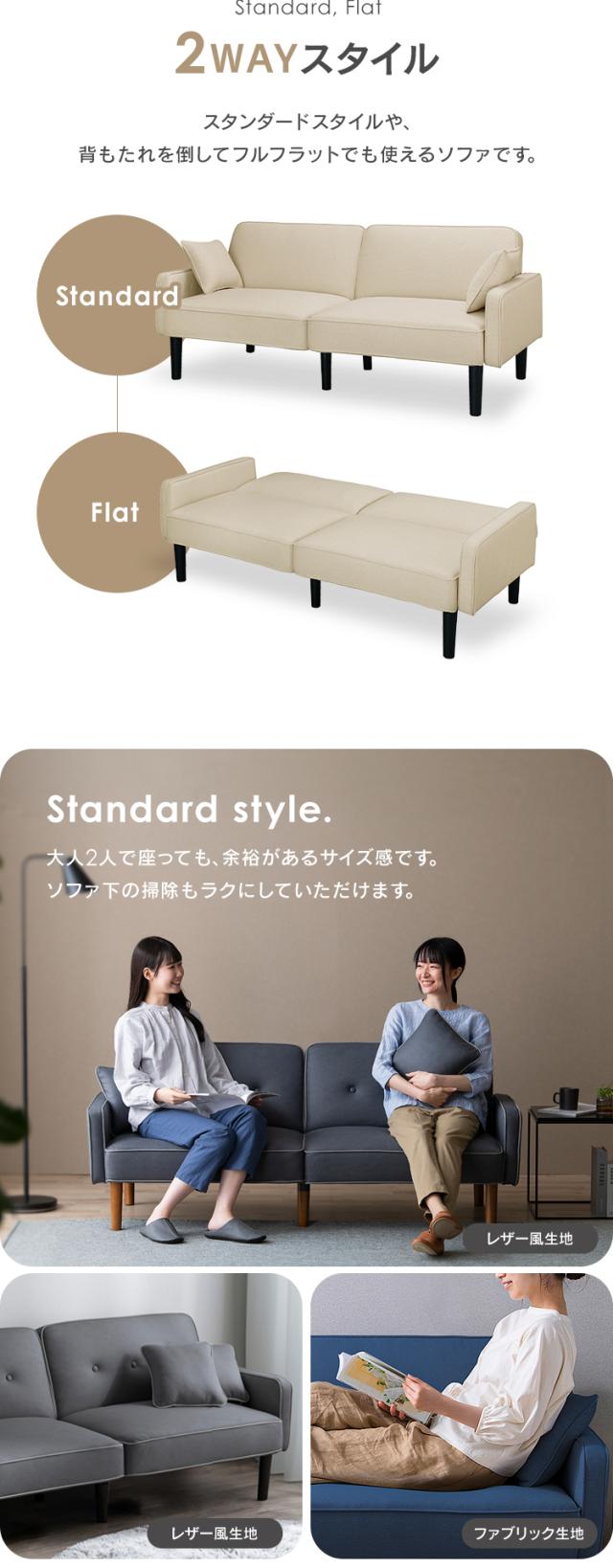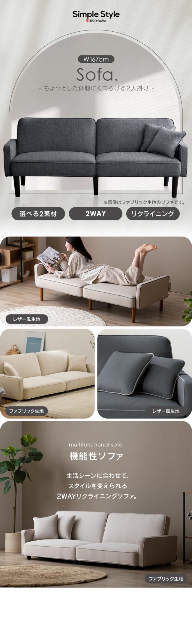★全品対象250円offクーポン★ ソファー 2人掛け 北欧 リクライニング ローソファー ソファーベッド おしゃれ 韓国風 クッション付き ファブリック ソファ ソファーベット アイリスオーヤマ RSB-2S * 新生活 インテリア
