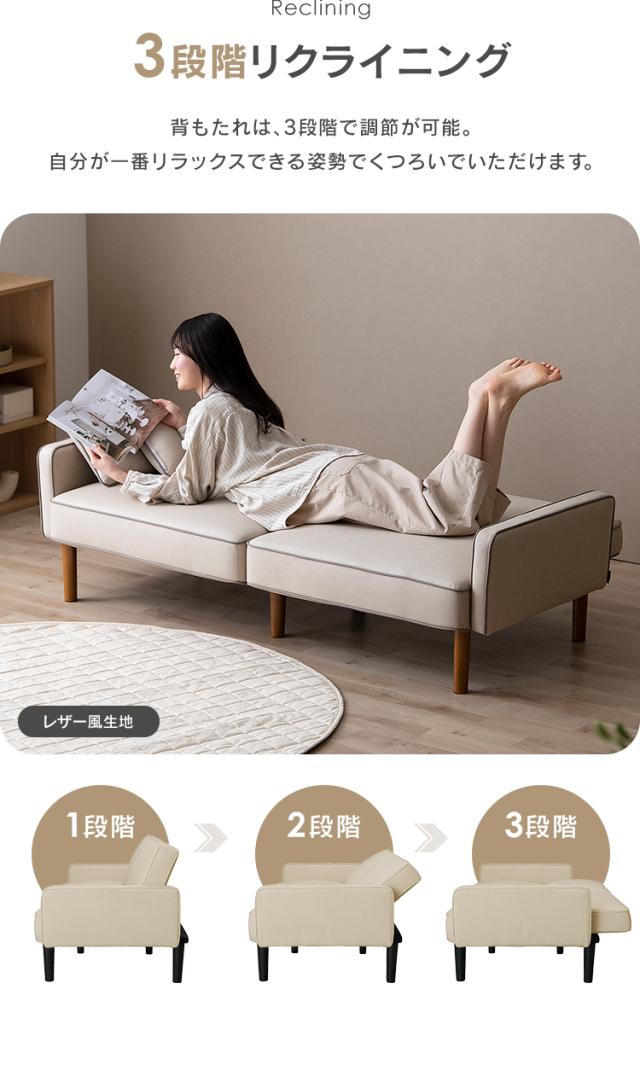 生活シーンに合わせてスタイルを変えられるリクライニングソファ。