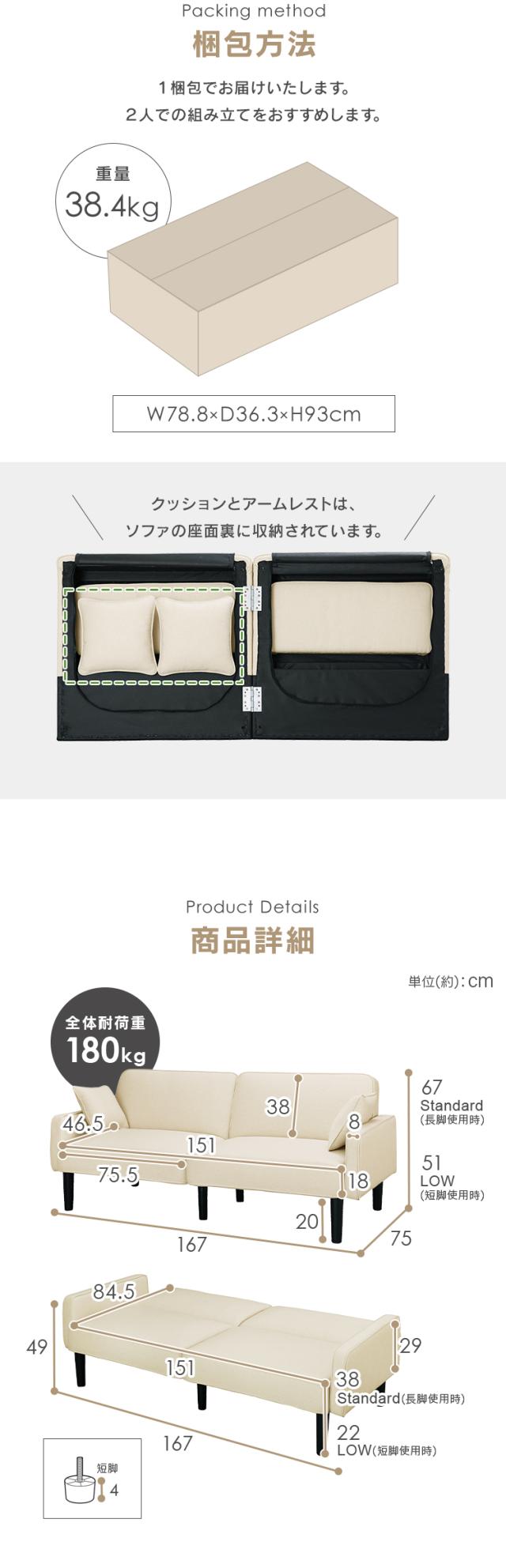 幅約167.0×奥行約75.0×高さ約67.0(ロータイプの高さ約51.0)