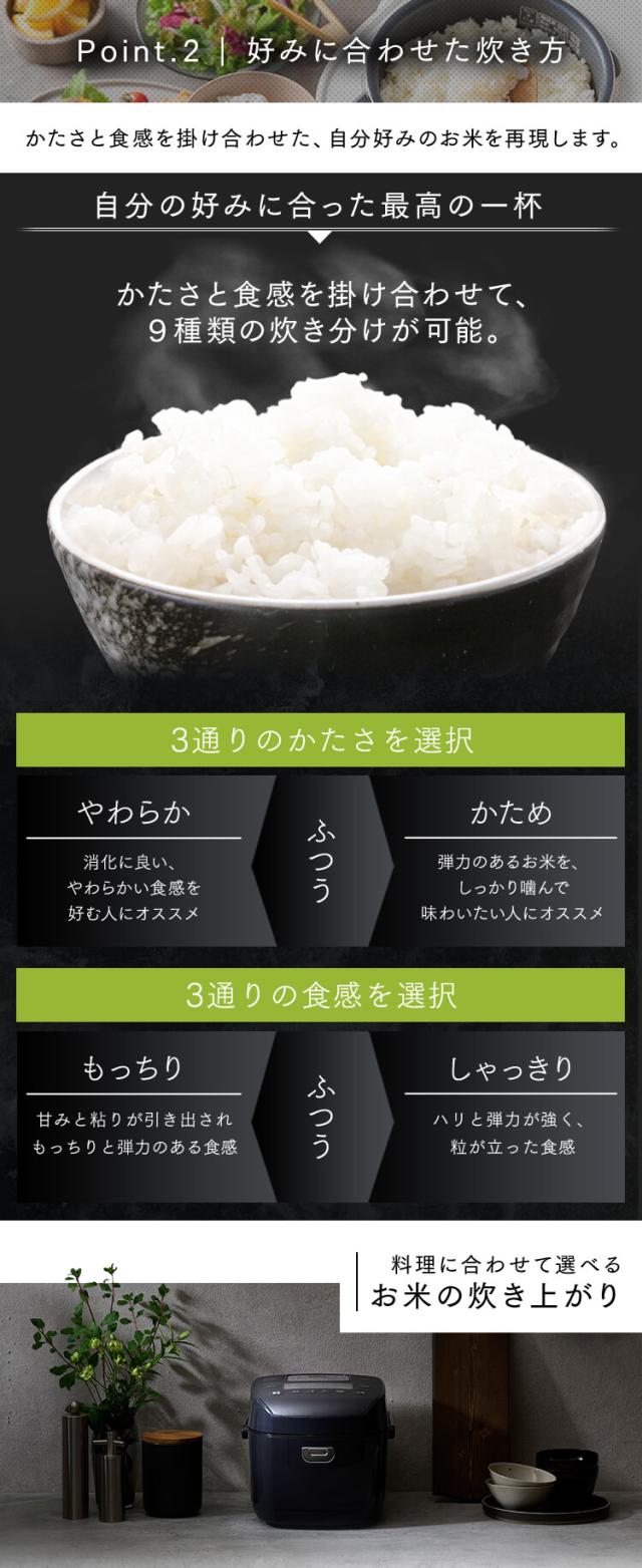 - こちらの炊飯器は、お米の銘柄によって炊き分けができて、圧力だし、とても美味しいご飯が炊けます。 夫婦で使うには丁度良い大きさで、今回もやはりお気に入りのこちらの炊飯器を購入しました。ありがとうございま...