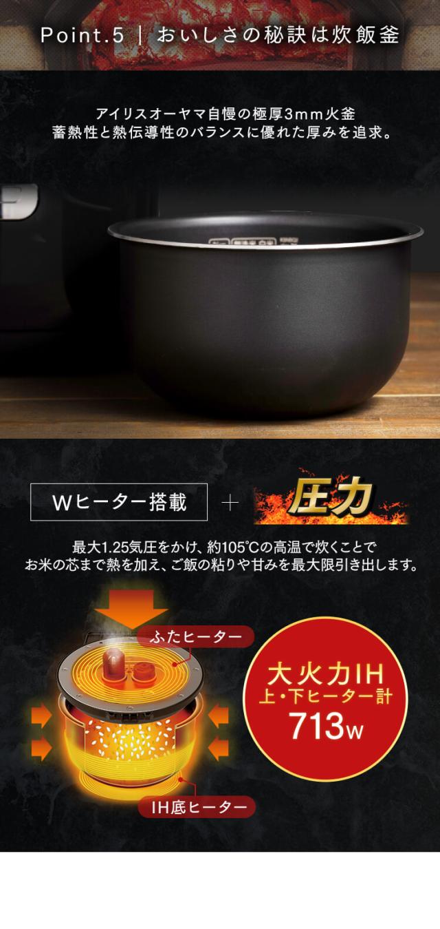 炊飯器 3合 一人暮らし 圧力IH アイリスオーヤマ アイリス 3合炊き 圧力炊飯器 圧力IH炊飯器 IH炊飯器 IH 炊飯ジャー 銘柄炊き 省エネ 早炊き ブラック 黒 RC-PDA30 安心延長保証対象