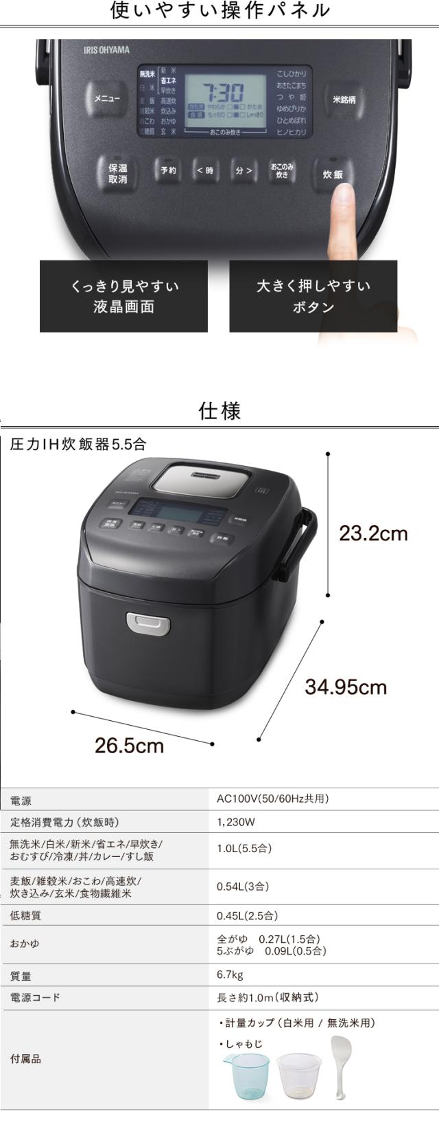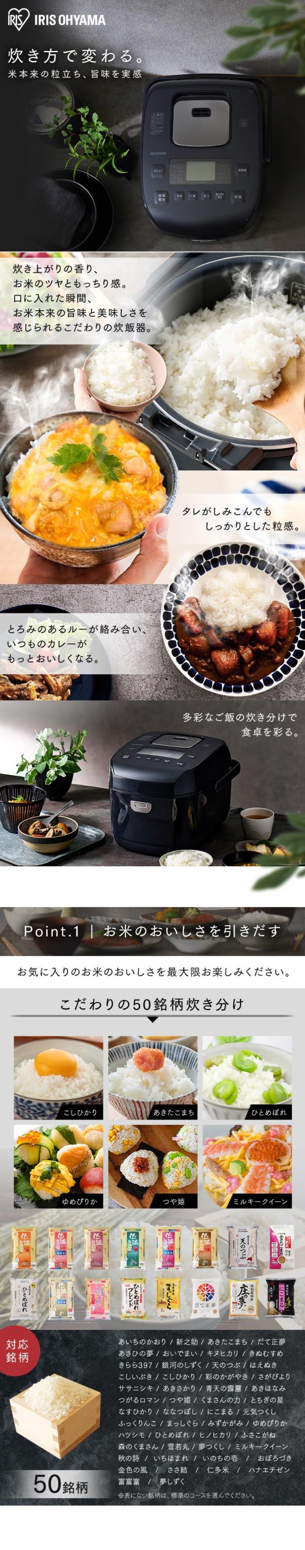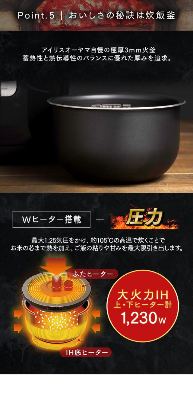 \1000円OFFクーポン!~12/19 9:59/炊飯器 5.5合 一人暮らし 圧力IH アイリスオーヤマ アイリス 5合炊き 圧力炊飯器 圧力IH炊飯器 IH炊飯器 IH 炊飯ジャー 銘柄炊き 省エネ 早炊き ブラック 黒 RC-PDA50[kdn] 安心延長保証対象