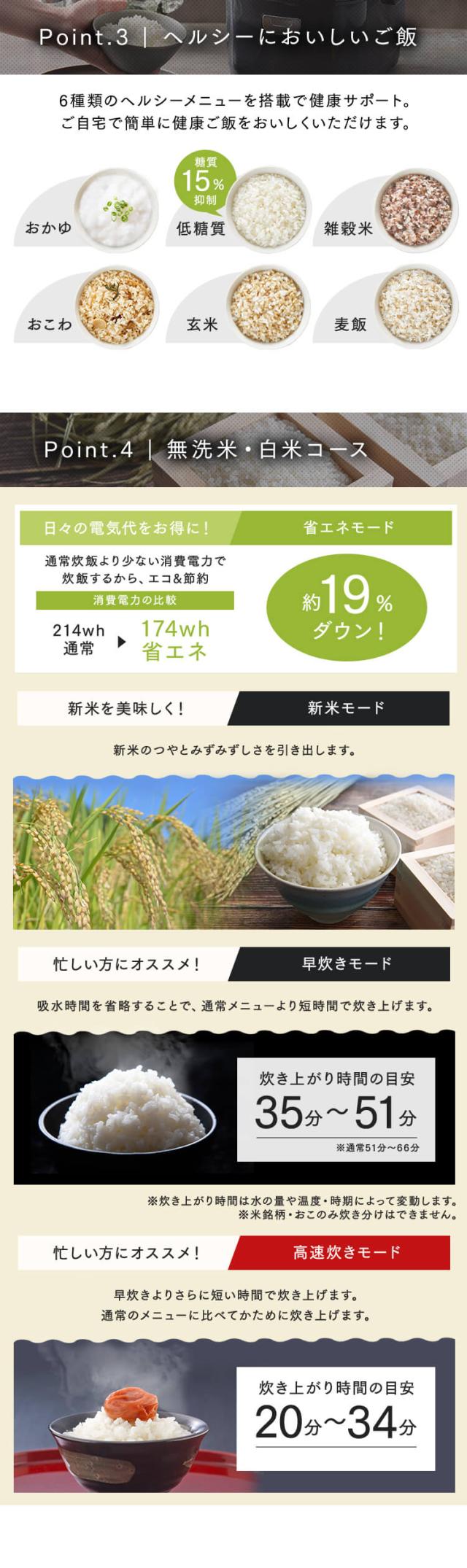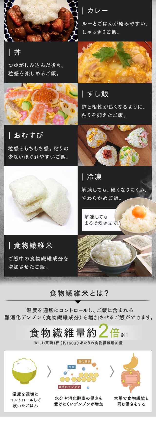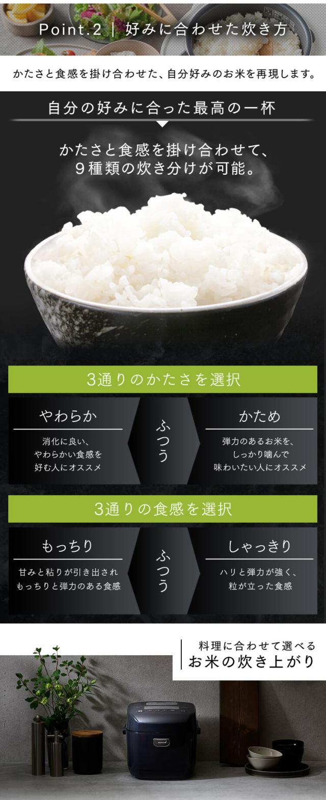 - 今まではIH炊きのを使っていて買い換えです。米の種類、固さやもっちり感を選べて、いつもの米がもっと美味しく炊き上がりました。