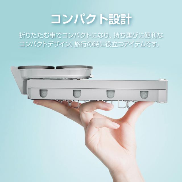 【コンパクト設計】折りたたむ事でコンパクトになり、持ち運びに便利なコンパクトデザイン。旅行の時に役立つアイテムです。
