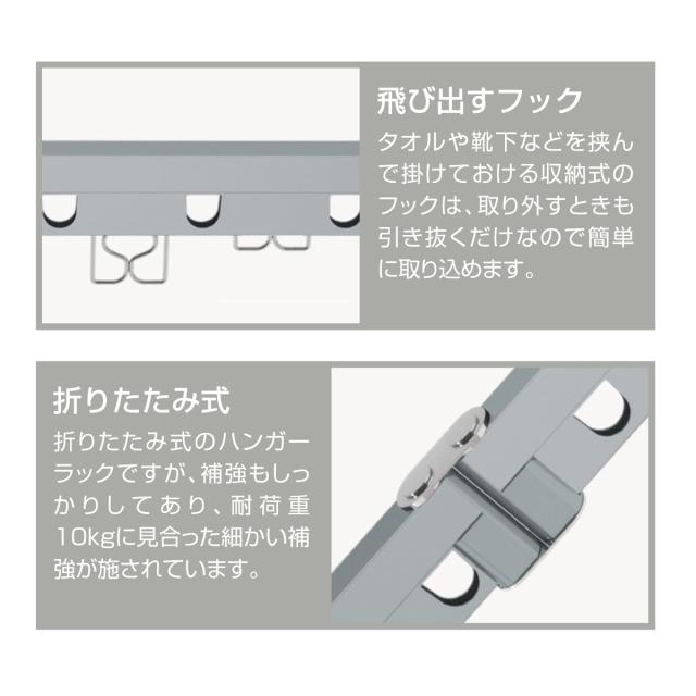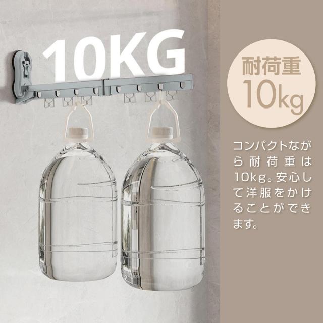 【耐荷重10kg】コンパクトながら耐荷重は10kg。安心して洋服を掛けることができます。