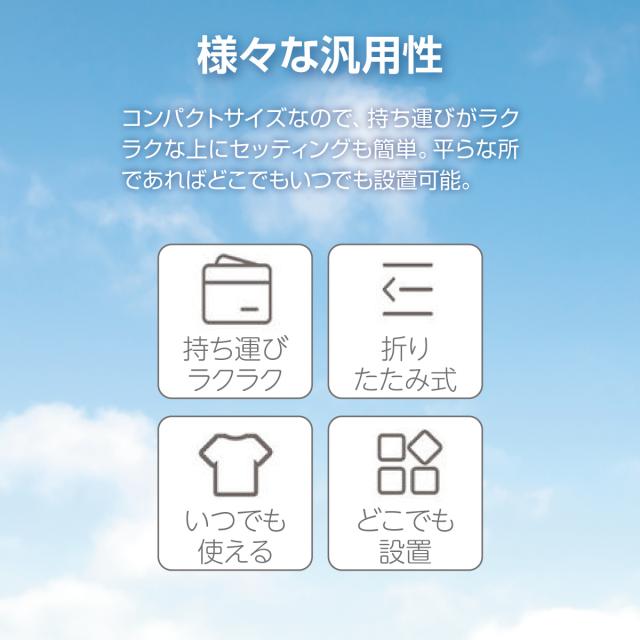【様々な汎用性】コンパクトサイズなので、持ち運びがラクな上にセッティングも簡単。平らな所であれば、どこでもいつでも設置可能。