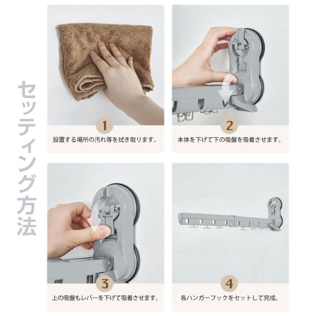 ハンガーラック 吸盤 折りたたみ ハンガー 洗濯 コンパクト 持ち運び どこでも設置 新生活 pohanger01
