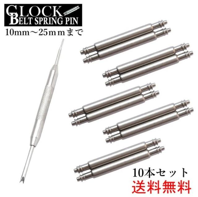 【時計】【ベルト修理】ステンレス ばね棒 バネピン 10本セット バネ外し 10mm〜25mm