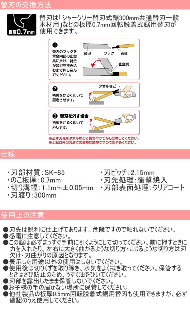 シャークソー 替刃式鋸 300mm 日本製 送料無料 園芸用品 大工 木工用 のこぎり 鋸 一般木材用 替刃式 SHARKSAW