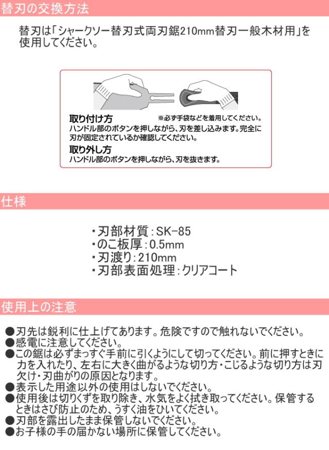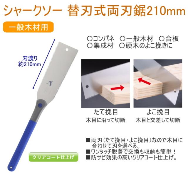 シャークソー 替刃式両刃鋸 210mm 日本製 送料無料 園芸用品 大工 木工用 両刃 一般木材用 替刃式 SHARKSAW