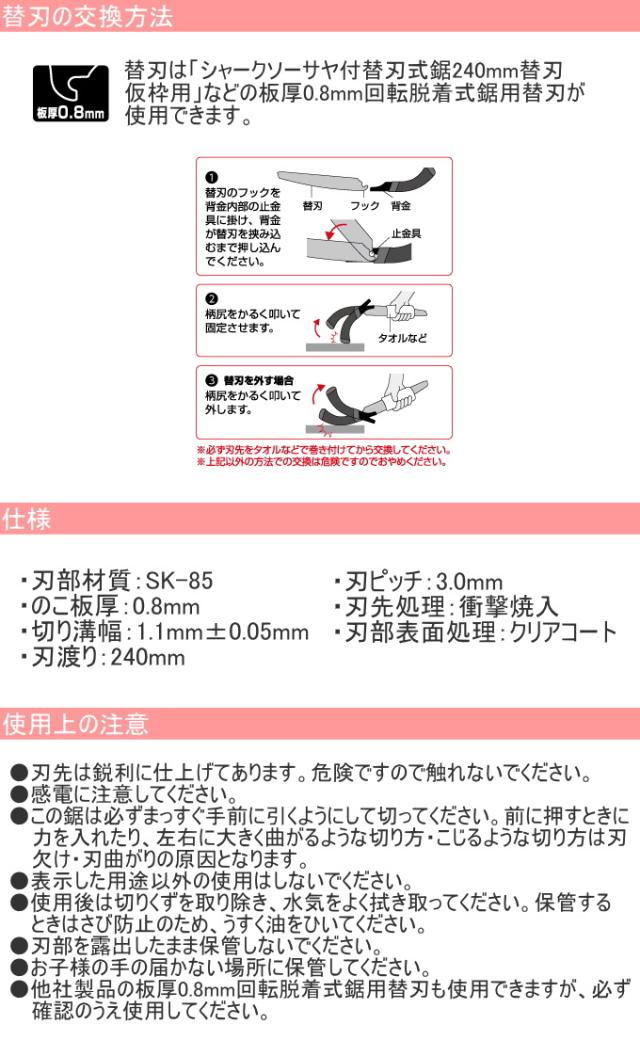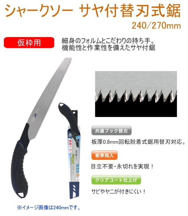 シャークソー サヤ付替刃式鋸 240mm 仮枠用 日本製 送料無料 園芸用品 木工用 仮枠用 替刃式 サヤ付 SHARKSAW