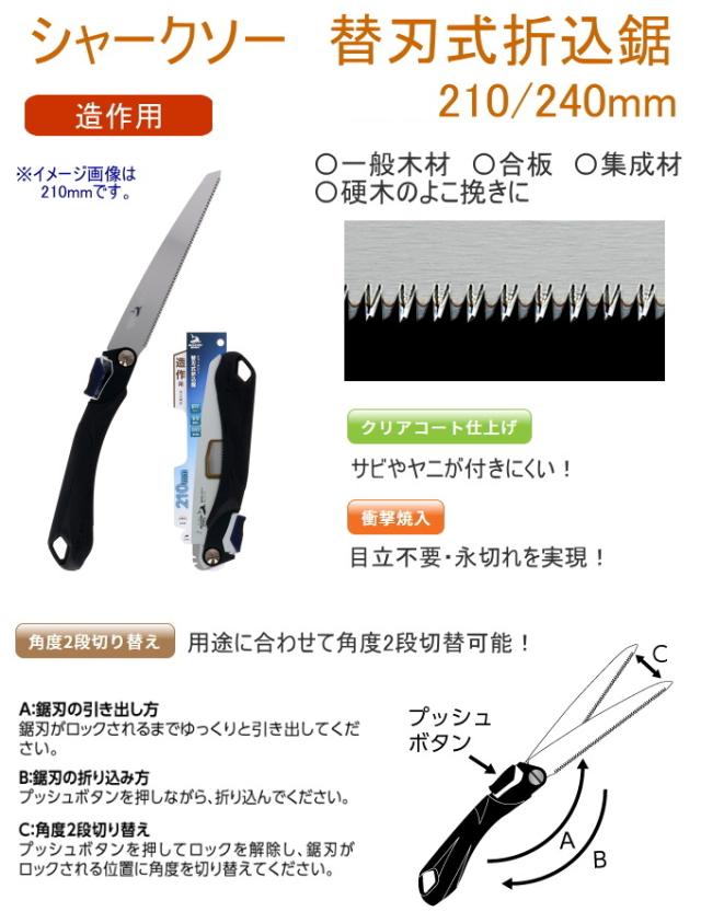 シャークソー 替刃式折込鋸 210mm 造作用 日本製 送料無料 園芸用品 木工用 造作用 替刃式 折込式 SHARKSAW