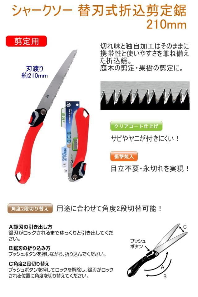 シャークソー 替刃式折込剪定鋸 210mm 剪定用 日本製 送料無料 剪定用 庭木 果樹 替刃式 折込式 SHARKSAW