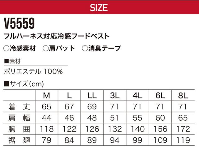 快適ウェア ファン対応ウェア フルハーネス対応 冷感フードベスト V5559