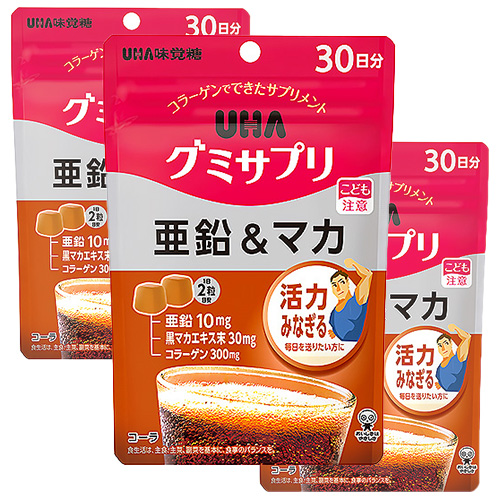 UHA味覚糖 UHAグミサプリ 亜鉛&マカ 30日分×3個 (送料無料)(ポストC)