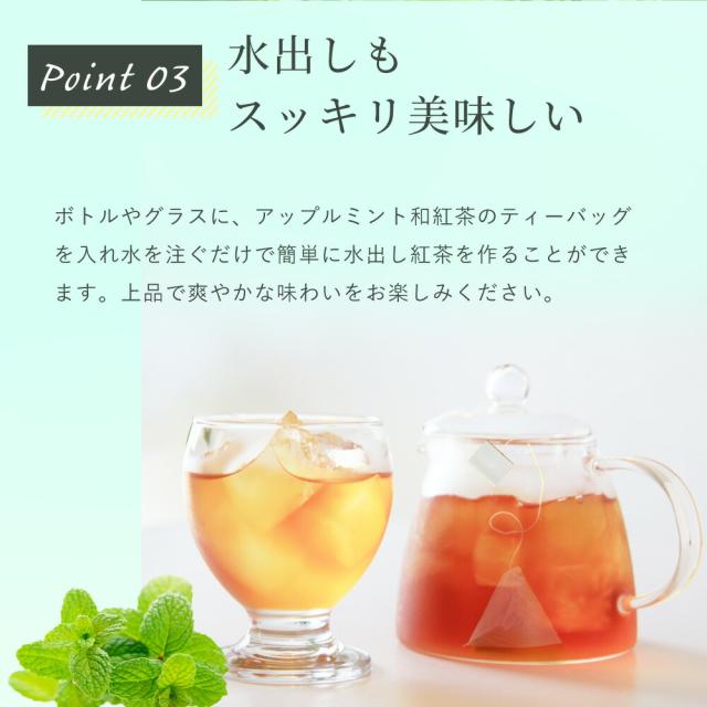 アップルミント × 和紅茶 2.5g×35p ティーバッグ 国産 フレーバーティー お茶 紅茶 アイスティー ホット お湯出し 水出し 水出し茶 冷やし茶 冷茶 アフタヌーンティー ハーブ フレッシュ ひも付き フレーバードティー 送料無料 メール便