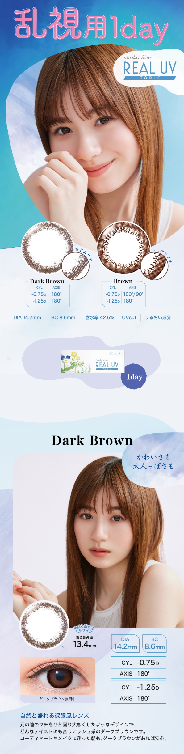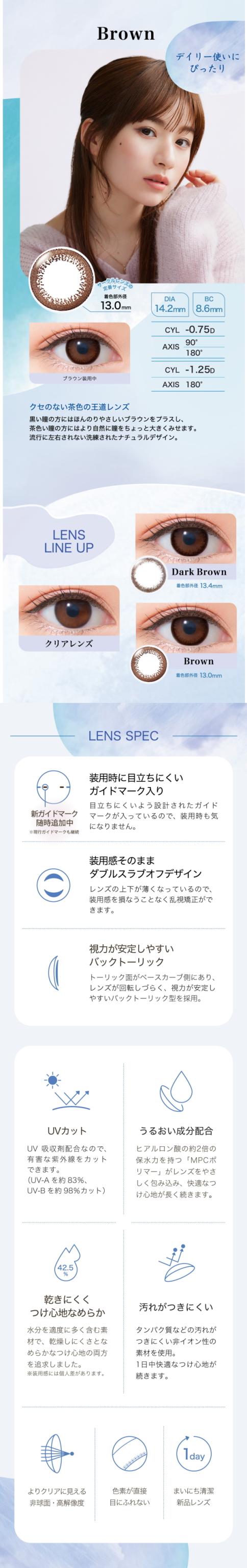 ◆CLY(乱視度数):-0.75D / -1.25D(ブラウンのみ)