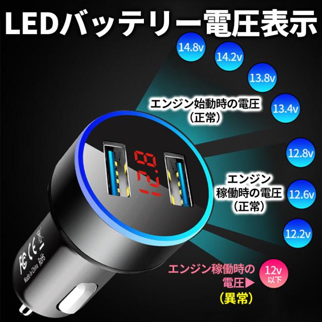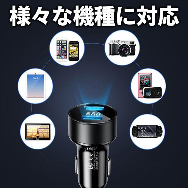 シガーソケット usb 車載充電器 車 充電器 カーチャージャー 2ポート iphone 急速 タイプc 車載 充電器 電圧計付き ライト 変換 急速充電器 多機能 カーソケット USB増設 車用