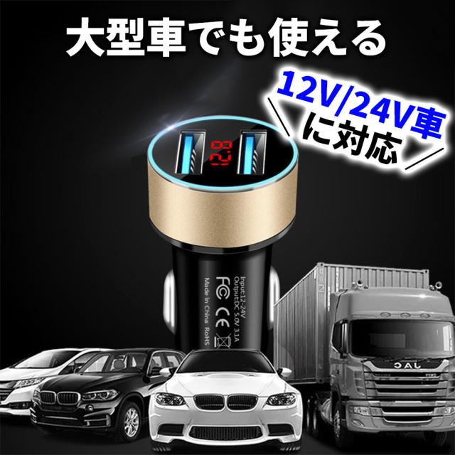 同時充電 3.1A USB 2ポート シガーソケット 電圧デジタル表示 12V/24V対応 車載 充電器 カー用品 カーソケット 自動車 カーチャージャー スマホ 旅行 ドライブ