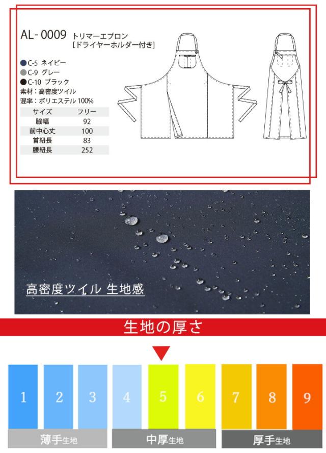 アニマリード トリマーエプロン 動物病院 獣医 トリマー 撥水 男女兼用 AL-0009 ANIMALEAD 医療白衣 ドクター 犬 猫動物 ドライヤーホルダー【専用ウェア】ドクター ナース チトセ 術衣【送料無料】