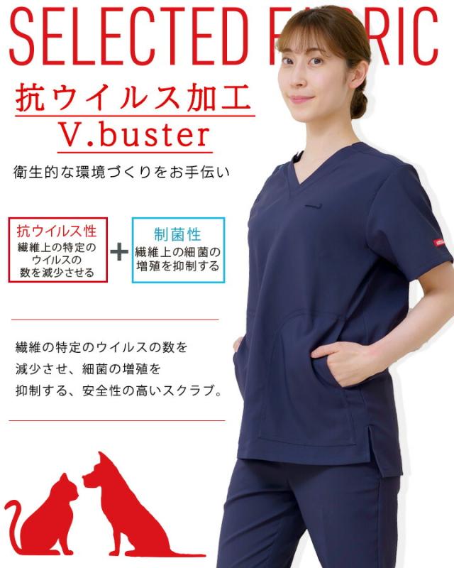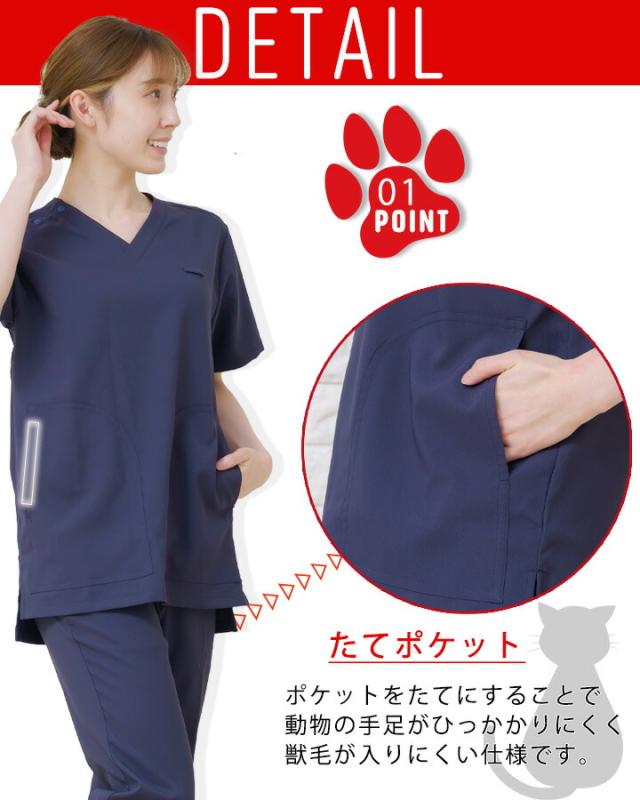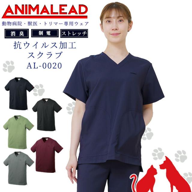 アニマリード スクラブ 動物病院 獣医 トリマー 抗ウイルス加工 制菌 男女兼用 AL-0020 ANIMALEAD 医療白衣 ドクター 犬 猫【専用ウェア】ドクター ナース チトセ 術衣【送料無料】