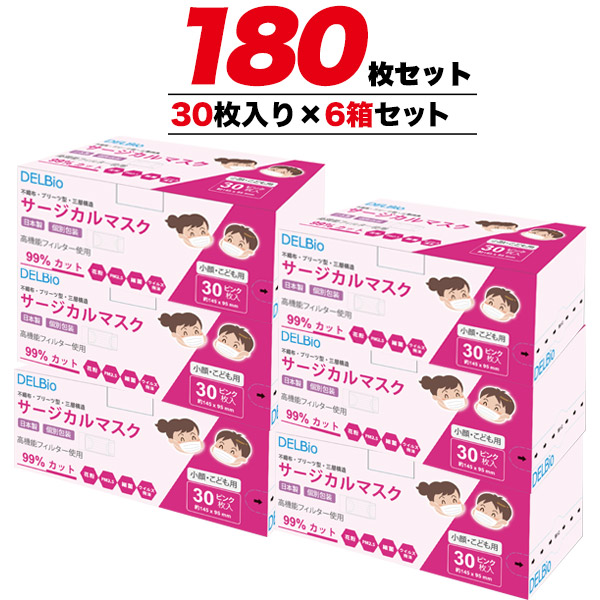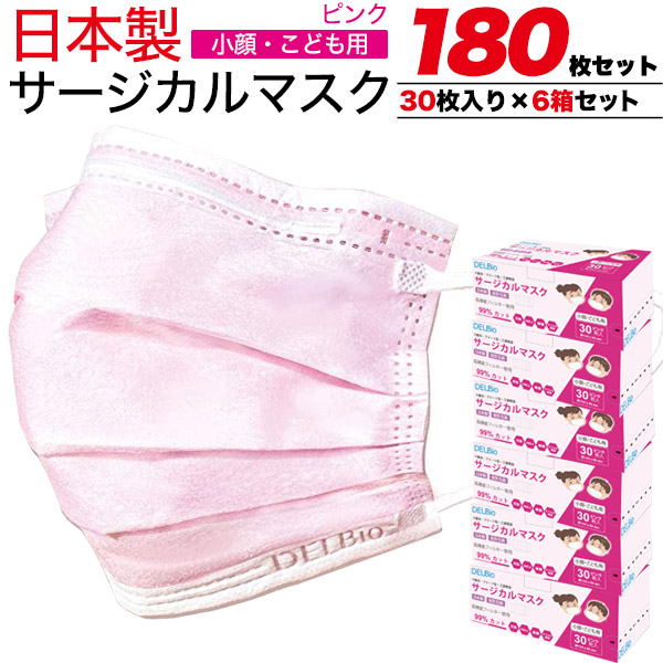 マスク 180枚セット 小さめ 小顔 こども用 日本製 サージカルマスク 血色マスク ピンク 不織布 使い捨て ますく 3層構造 30枚 6箱セット 花粉症 通学 通学 学校 感染予防 ウイルス 飛沫対策 花粉 埃 乾燥 アレルギー 風邪予防 保湿 衛生的 介護 医療施設 小学生 中学生 消耗品