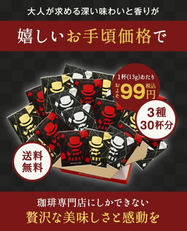 13g 3種 30杯分 ドリップ 個包装 澤井珈琲 DANDY ドリップバッグ ドリップコーヒー 飲み比べ セット 珈琲 高級 マグカップ用 濃いめ