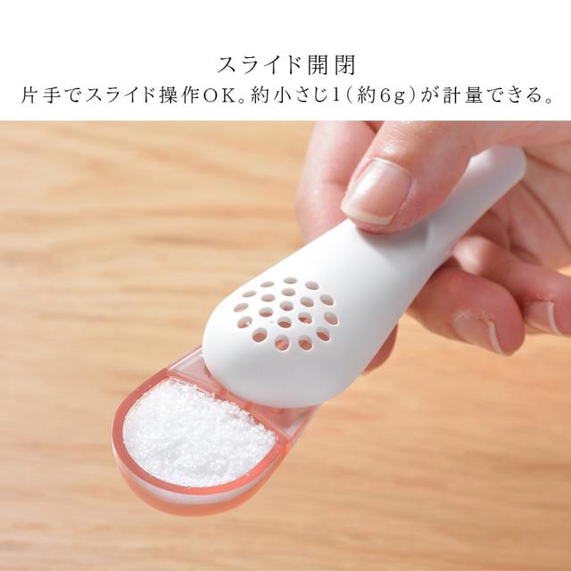 塩ふるい,スプーン,粗塩,塩,肉,魚,下ごしらえ,減塩,計量,すり切り,片手,スライド,調理器具,時短,グッズ,アイテム,キッチン,台所,調理,料理,クッキング,家事,キッチン用品,キッチン雑貨,キッチンアイテム,台所用品,ベーシック,定番,ヘビロテ,普段使い,日常使い,デイリーユース,おすすめ,オススメ,人気,アイデア,便利,便利グッズ,一人暮らし,独り暮らし,トータルコーディネート,新生活,引越,引越し,引っ越し,新築,新居,