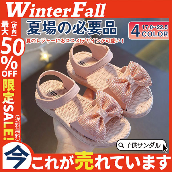 子供サンダル 女の子 キッズ 子供靴 ジュニア ビーチサンダル アウトドア 蝶結び 通気性 可愛い 快適 軽量 通園 通学 10代