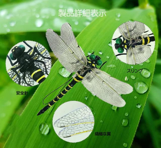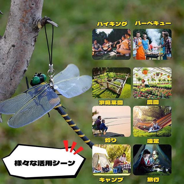 ・虫避け抜群-- 飛んでいる様々な小型の虫を捕食します。アブや蜂にとって天敵の姿をした。帽子やウ ェアに付けることで嫌がって逃げていくことでしょう!キャンプ場などで吊るし、風になびかせての使用にも忌避効果 が見られます。(※商品の効果を示すものではございません)