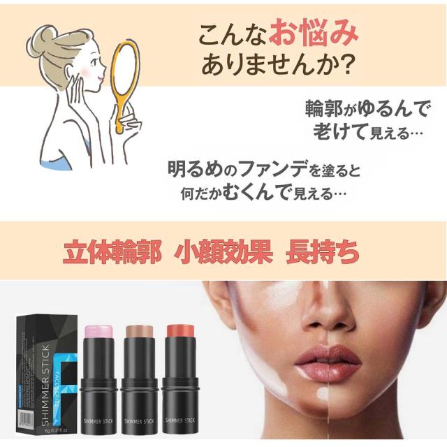 頬紅 チーク コンシーラー スティックハイライター シャドウ メイクスティック カラースティック シマースティック ナチュラル 立体小顔 立体感 透明感 小顔効果 シェーディング ポイントメイク 鎖骨 鼻 防水 ナチュラル