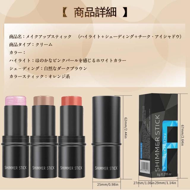 ハイライター スティック ハイライト バーム お得3点セット ツヤ肌 しわ隠し 立体輪郭 長持ち 携帯便利 初心者向け メイクスティック ハイライトペン チーク用ブラッシュ