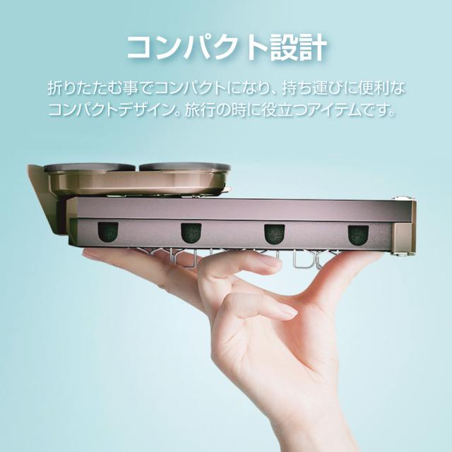 【コンパクト設計】折りたたむ事でコンパクトになり、持ち運びに便利なコンパクトデザイン。旅行の時に役立つアイテムです。