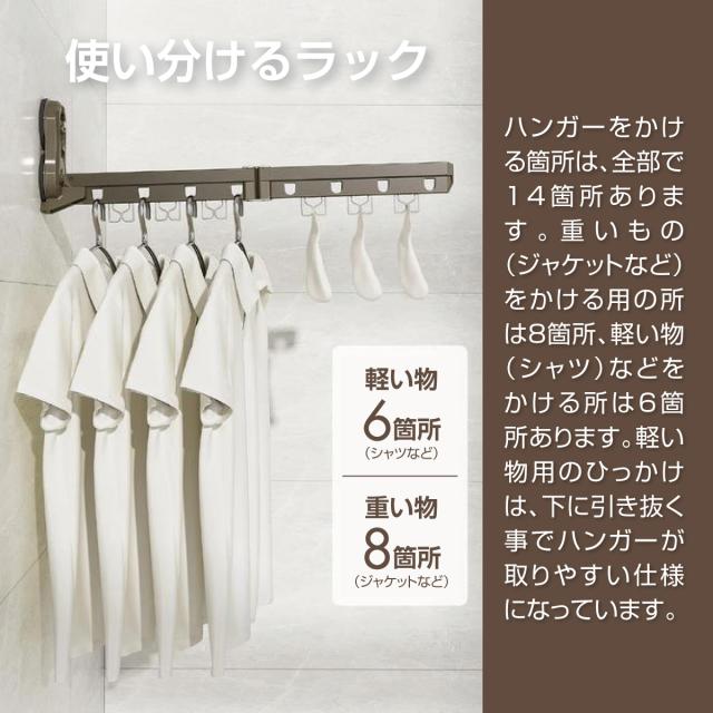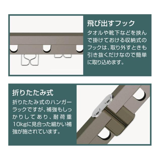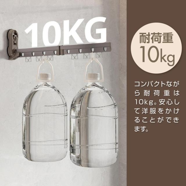 【耐荷重10kg】コンパクトながら耐荷重は10kg。安心して洋服を掛けることができます。