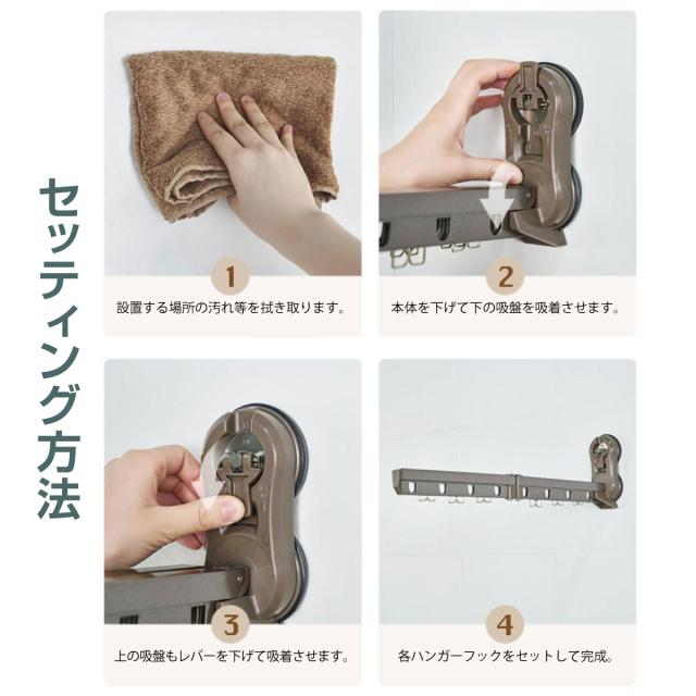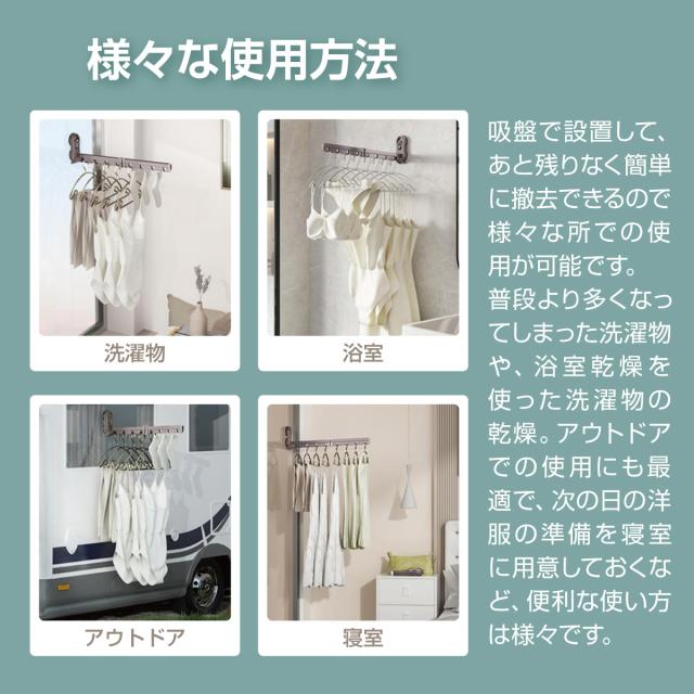 ハンガーラック 吸盤 折りたたみ ハンガー 洗濯 コンパクト 持ち運び どこでも設置 新生活 pohanger02