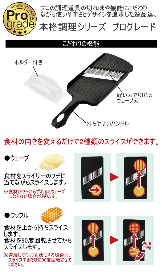 プログレード ウェーブ&ワッフルスライサー PG-617 日本製 スライサー 波型 ワッフル カット きゅうり 人参 じゃがいも