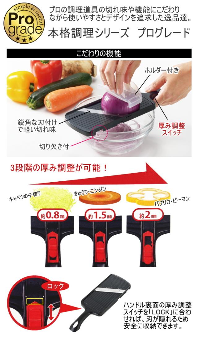 プログレード 薄切りできる厚み調整スライサー PG-629 日本製 スライサー 厚み調整 3段階 キャベツ 千切り じゃがいも