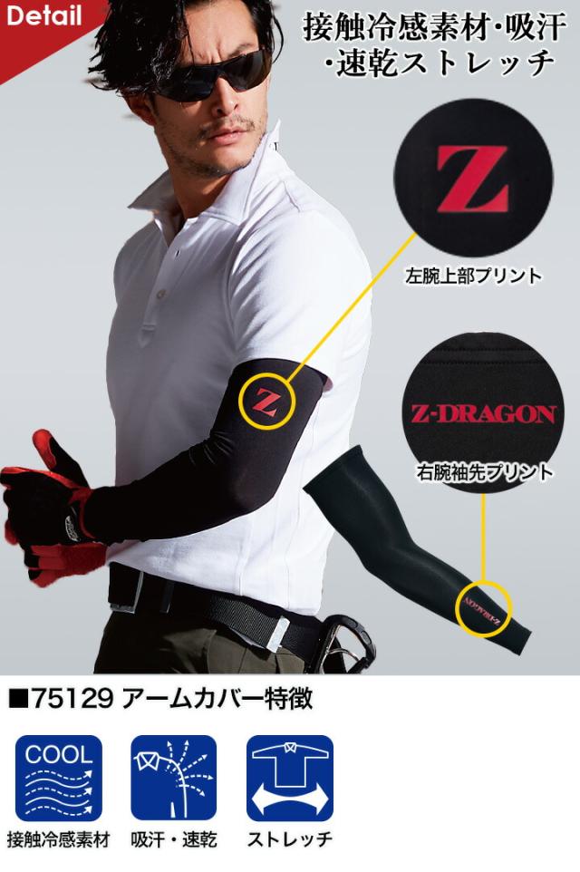 【即日発送】2枚セット アームカバー 接触冷感 Z-DRAGON 75129 【同色・同サイズ 2枚組】吸汗 速乾 夏用 ストレッチ 春夏 スポーツ 作業服 作業着 自重堂【送料無料】