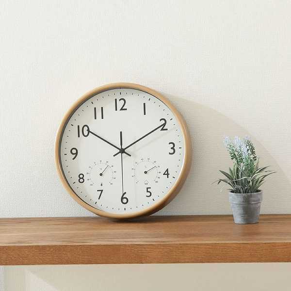★全品対象250円offクーポン★ 掛時計 温湿度計付 ミエル 直径25cm 28198 時計 掛け時計 静音 温湿度計付き シンプル インテリア 電池式 ナチュラル ブラウン 見やすい 新生活 インテリア