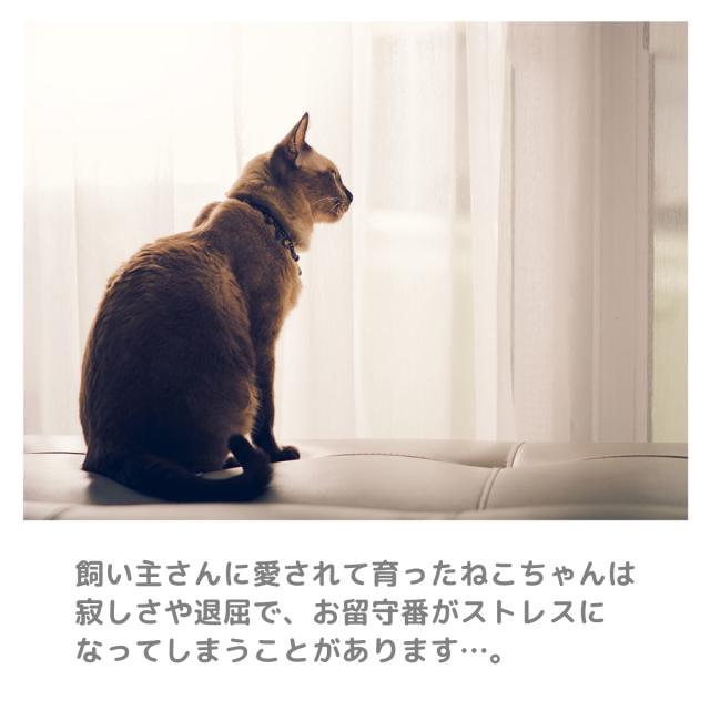 飼い主さんに愛されて育った猫ちゃんは、寂しさや退屈でお留守番がストレスになってしまうことがあります・・・。