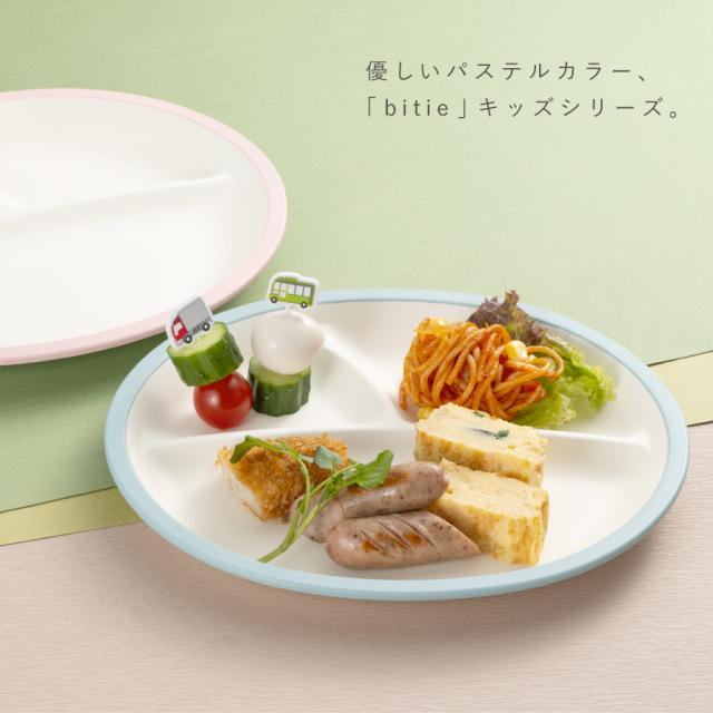 パステルカラーで食材を美味しく彩る「bitie」シリーズにキッズ食器も登場!軽く、割れにくい素材で安心。抗菌素材で清潔!ワンプレートで簡単盛り付けできるキッズワンプレート。