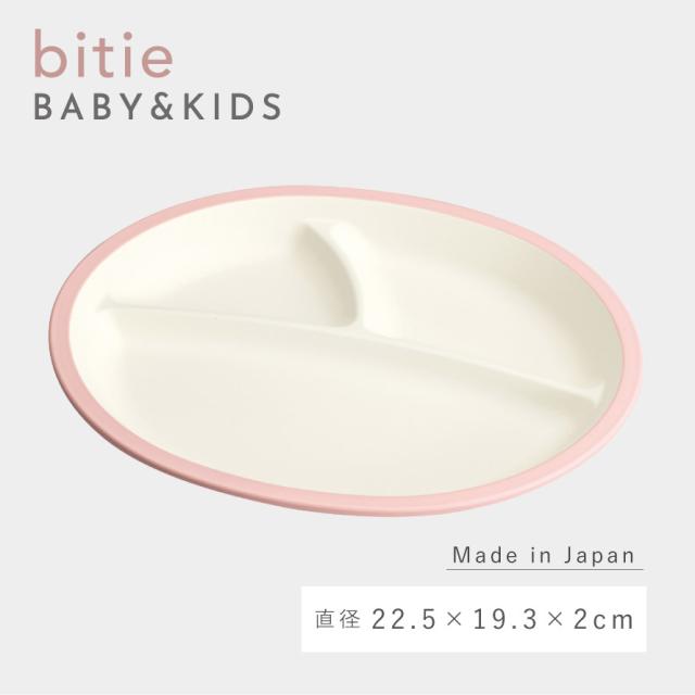 ワンプレート 丸皿 22.5cm 仕切り 子ども食器 食器 食洗機対応 レンジ 割れない 軽い 抗菌加工 子ども こども bitie レンジ小判仕切プレート BPAフリー 割れない食器