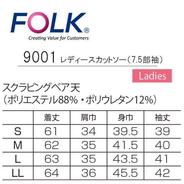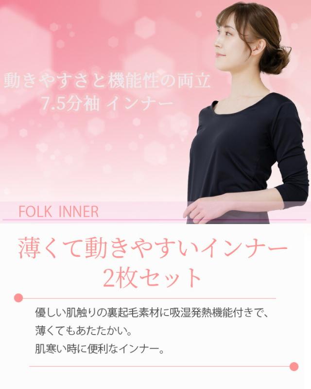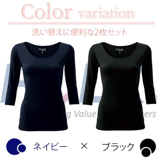 【即日発送】フォーク FOLK スクラブインナー【2枚組】インナー スクラブインナー アンダーシャツ【7.5分袖】オールシーズン フォーク9001 レディース インナーウェア 医療用 インナー 女性用 カットソー 2枚セット売り【送料無料】