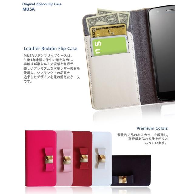 iPhone14 /14 Plus /14 Pro /14 Pro Max (2022)専用 MUSAリボンフリップケースは、生後1年未満の子牛の革をなめし、手触りが柔らかく光沢感と色彩が美しいプレミアムな本革レザー素材を使用し、ワンランク上の品質を追求したデザインを兼ね備えたケースです。ゴールドがアクセントになる高級感あふれるリボンチャームが特徴です。