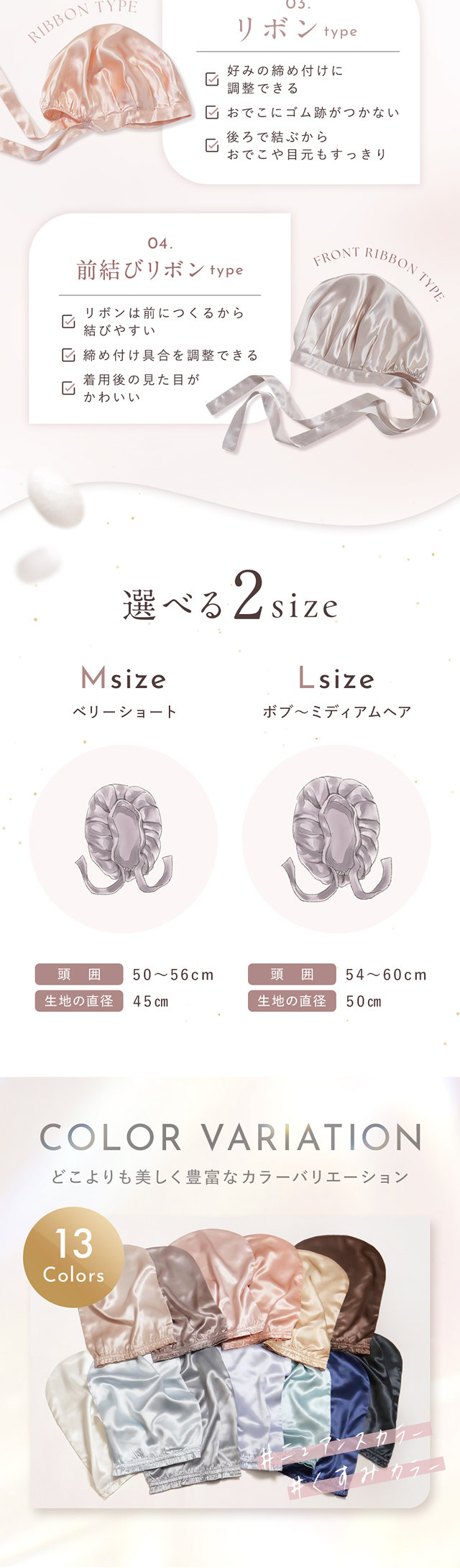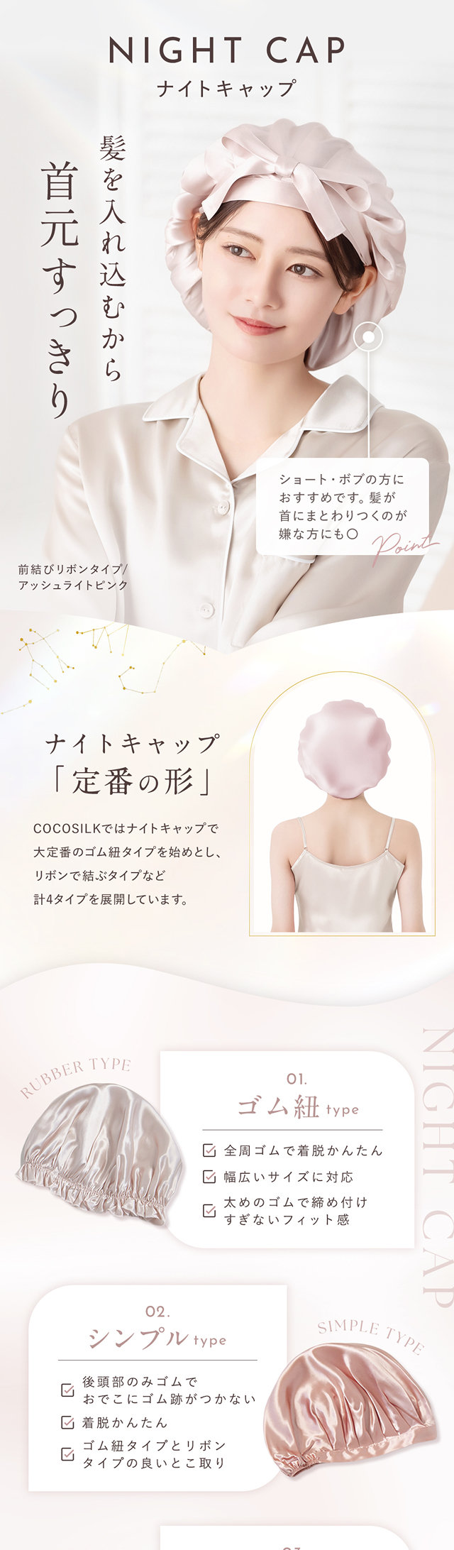 COCOSILK シルクナイトキャップ 前結びリボン タイプ