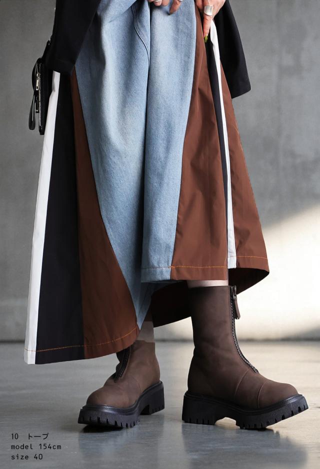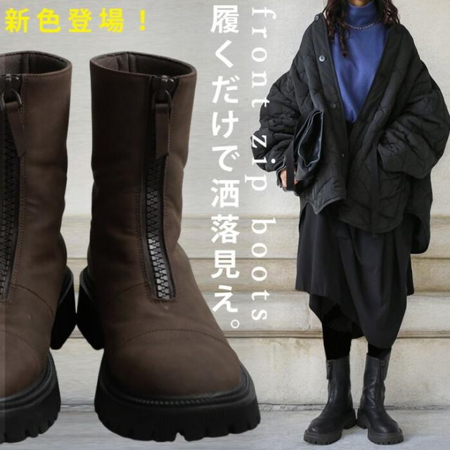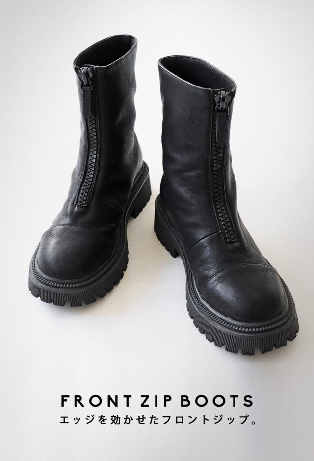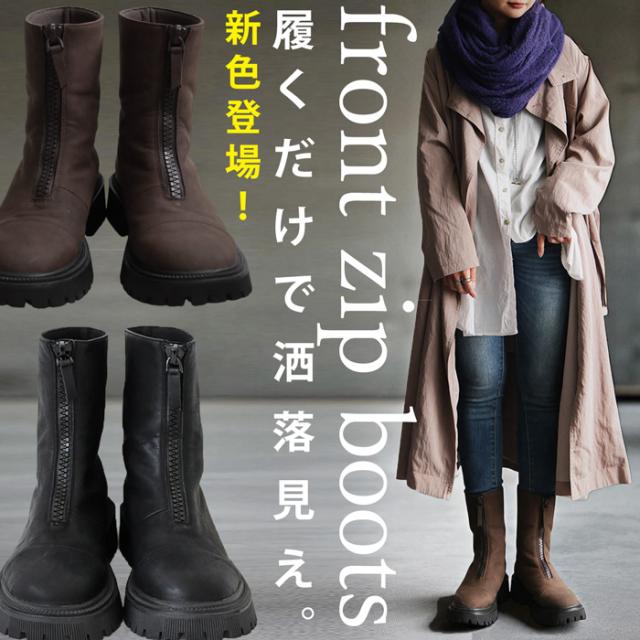 【予約:1月上旬納期】フロントジップブーツ ブーツ レディース 靴 合皮 送料無料・メール便不可