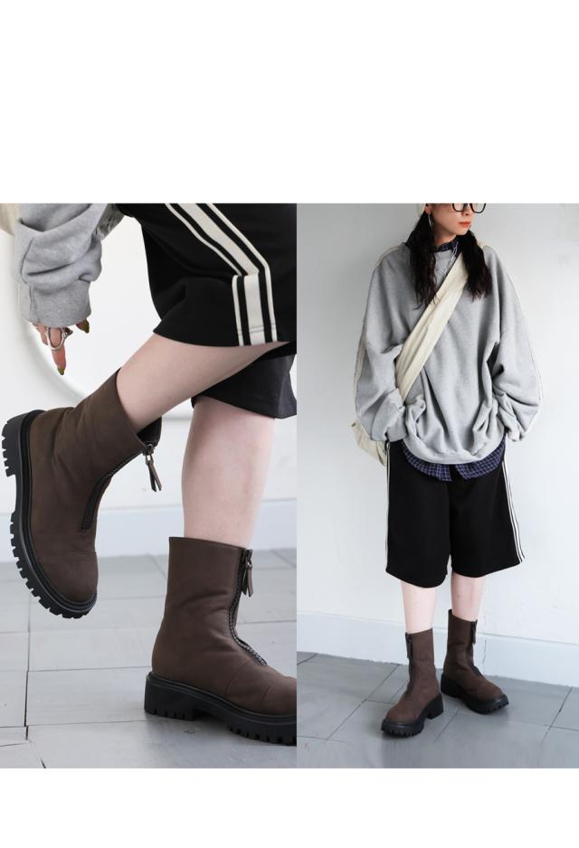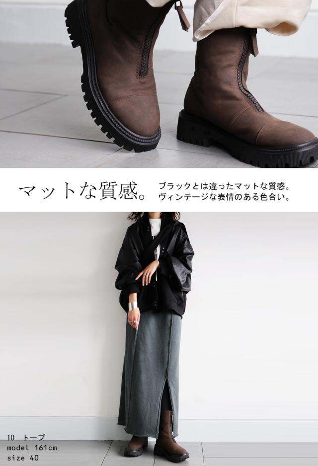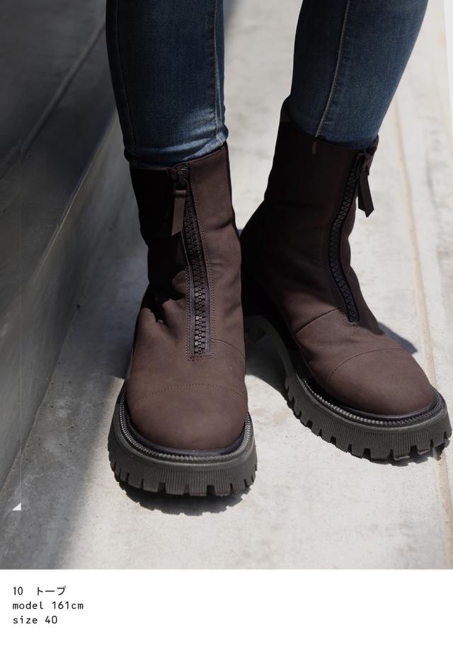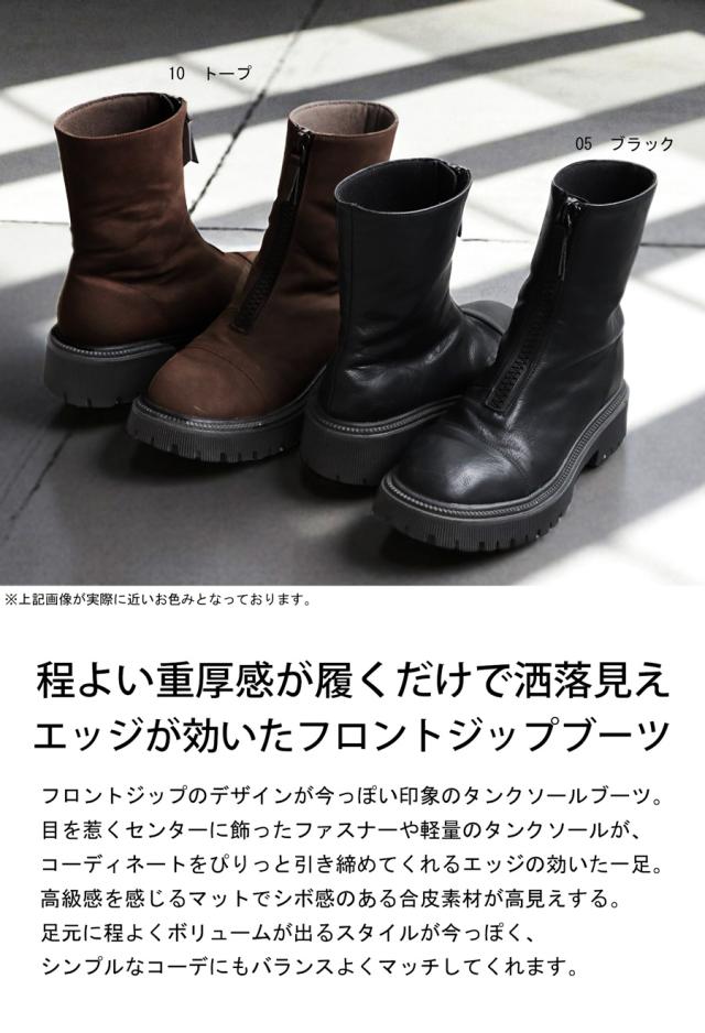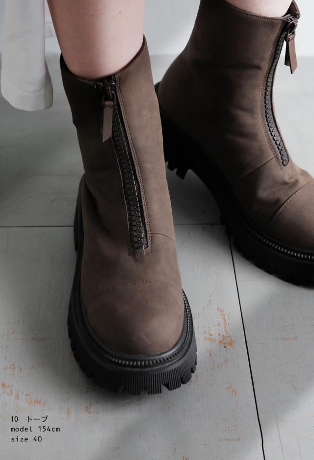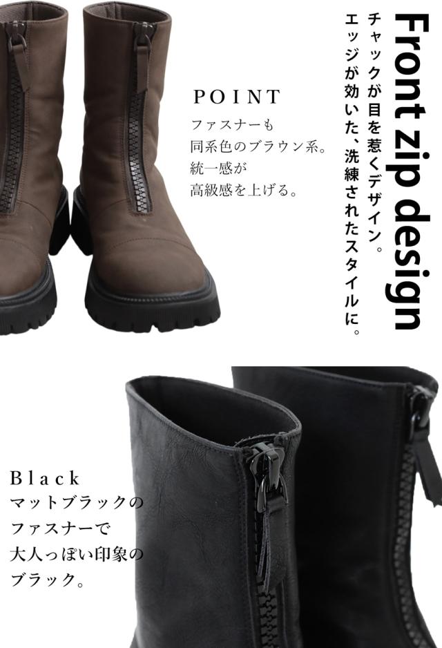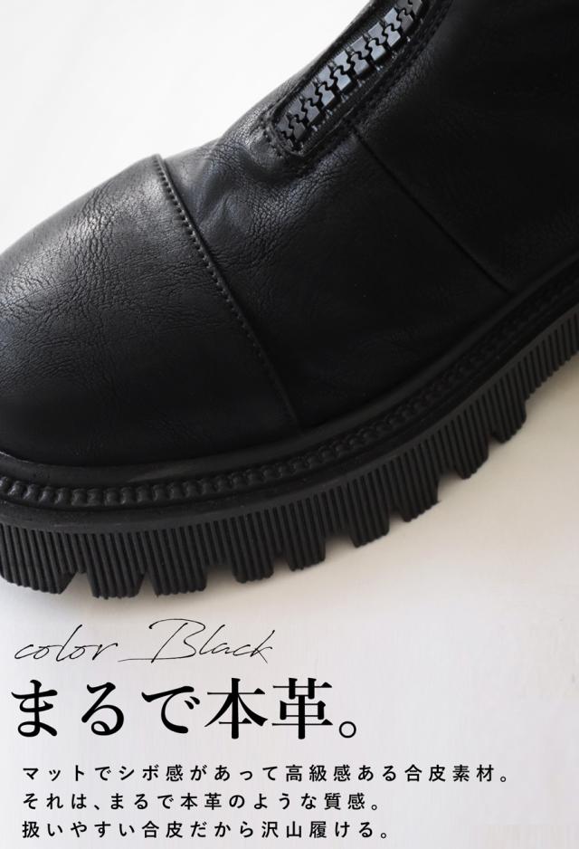 ap-00038 痛くない 歩きやすい フロントジップ ファスナー ボリューム 厚底 タンクソール 軽い 軽量 フェイクレザー 本革風 マット シボ感 ショートブーツ フロントファスナー モード